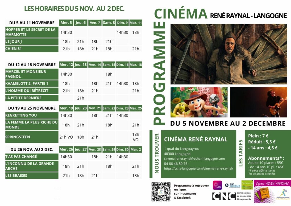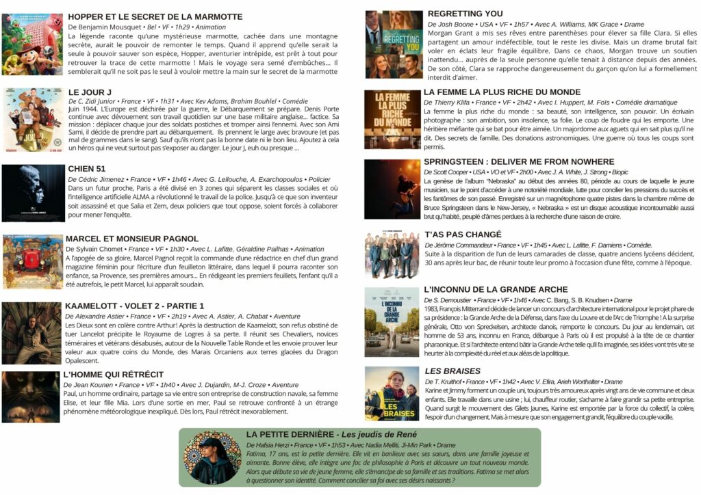 Programme de cinéma du 5 novembre au 2 décembre 2025 à télécharger ici