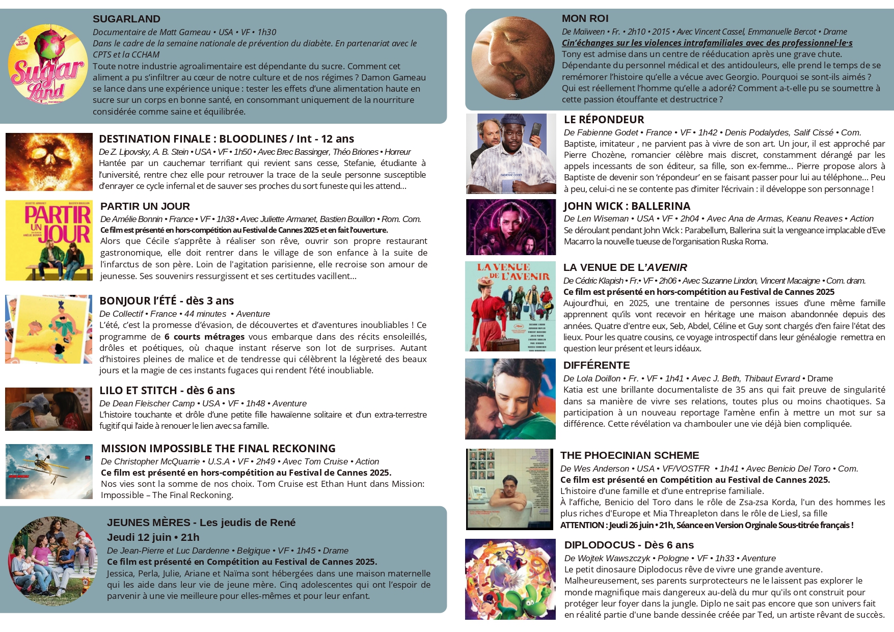 • Tarif séances Dispositif national d’éducation à l’image (école, collège, lycée cinéma) : 2.80 euros